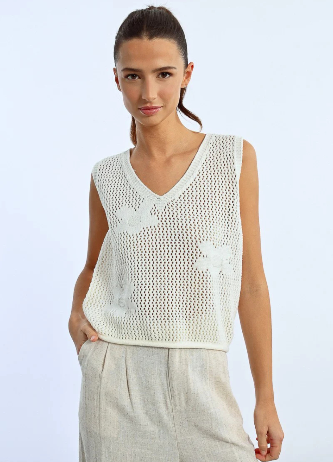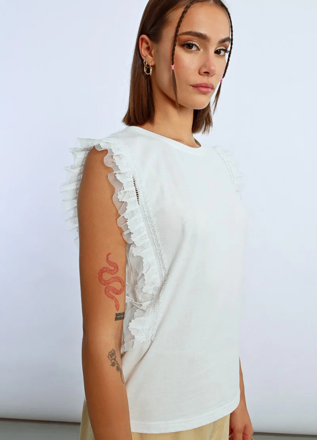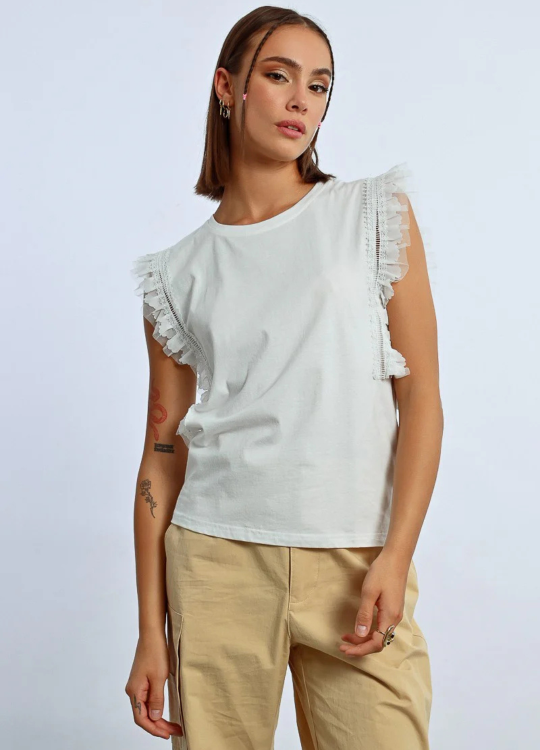 Sleeveless T-Shirt With Lace Trim